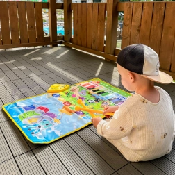 Podložka je mäkká, bezpečná a ľahko sa skladá a prenáša, takže ju vezmete do obývačky, detskej izby aj na cesty. Praktické funkcie ako nahrávanie a nastavenie hlasitosti robia z hrania zábavu aj učenie v jednom.