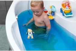 S medvedíkom Baby Born Splish Splash sa vaše dieťa premení na kapitána vlastnej vodnej expedície. Tento rozkošný medvedík je navrhnutý špeciálne pre hry vo vode a nepotrebuje k plávaniu batérie. Stačí natočiť jeho ruky dozadu a položiť ho na hladinu, kde sa s ľahkosťou pohybuje.