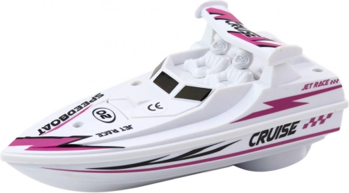 Motorová loďka pre deti, ktorá prináša hodiny zábavy na vode. Elegantný dizajn v bielej farbe s fialovo-čiernym vzorom, ktorý zaujme každého malého dobrodruha.