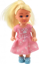 - Bábika s tmavými blond vlasmi vo svetloružových šatách
