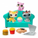 - 3 figúrky mačiek, gauč, mini notebook, stolík a snack doplnky (popcorn, burger, sushi, hranolky), zberateľská karta, virtuálny kód