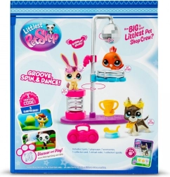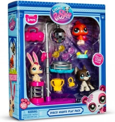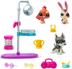 Vstúpte do sveta LITTLES PET SHOP a užite si disco atmosféru! Táto hravá sada prináša troch tanečných maznáčikov pripravených zažiariť pod svetlami disco gule. Otočné plošinky im umožnia točiť sa a predvádzať svoje najlepšie pohyby, zatiaľ čo štýlové doplnky podčiarknu ich osobnosť.