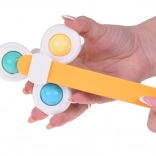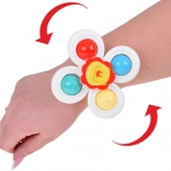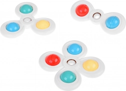 Vďaka špeciálnym krúžkom gravitácie spinner rozvíja schopnosti motoriky vášho dieťaťa a poskytuje mu nekonečnú zábavu. Spinner je dostupný v 3 kusoch, každý s vlastnou prísavkou a páskom, a prináša pestré a zábavné chvíle.