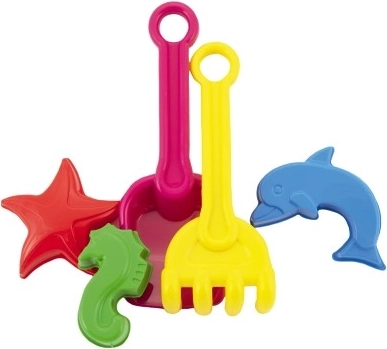 - Kompletná výbava: lopatka, hrabličky a 3 formičky na tvorenie rôznych tvarov.