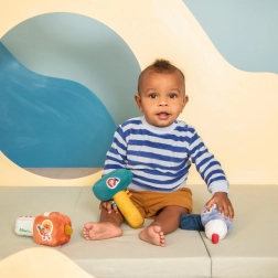 Táto jedinečná hrkálka v tvare motorovej píly je perfektnou voľbou pre malých kutilov, ktorí chcú napodobňovať hru dospelých. Vaše dieťa si zamiluje hru na pílenie pílou ako nášho priateľa Leva Jacka. Okrem stimulácie zmyslov a podpory predstavivosti hrkálka tiež rozvíja aktívne napodobňovanie.