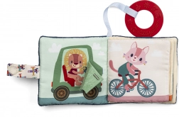 Textilná knižka s motívom psíka Julesa ponúka vašej ratolesti nespočet zábavy. Vďaka pútku na suchý zips ju môžete ľahko pripevniť na kočík alebo postieľku, čo uľahčuje manipuláciu a uchovávanie. Knižka stimuluje zrak, sluch a obsahuje všité hryzátko, ktoré uľaví deťom pri prerezávaní prvých zúbkov. Knižka neobsahuje text, ale veselými ilustráciami nabáda k rozprávaniu jednoduchých príbehov.