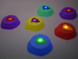 Každý z kameňov na ceste je vybavený grafikou prírodných motívov, ktoré stimulujú hmatové zmysly. Pod grafickou vrstvou nájdete batérie a prepínač, vďaka čomu možno kamene ľahko zapnúť. Po zapnutí kamene vyžarujú jasné svetlo, čo motivuje deti k pohybu a hre.
