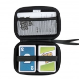 Puzdro na karty Skip-Bo je určené pre milovníkov tejto obľúbenej hry. Vďaka dostatočnému priestoru možno do neho ľahko uložiť nielen karty, ale aj herné inštrukcie. Karty jednoducho zložte do dvoch stohov, zaistite ich elastickými pásikmi a inštrukcie vložte do sieťovaného vrecka.