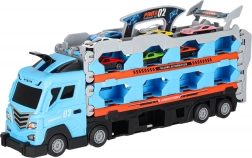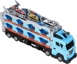 Súčasťou je zabudovaná vystreľovacia rampa pre rýchle štarty a 8 rôznych športových autíčok. Po dohraní možno všetky autíčka jednoducho uložiť späť do priehradiek v kamióne – set tak ponúka zábavu aj praktické skladovanie.