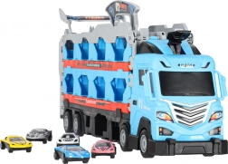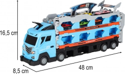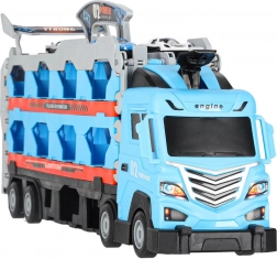 Táto multifunkčná sada kombinuje prepravník áut a dlhý závodný okruh v jednom. Po rozložení sa z kamióna stane dvojitá trať s dĺžkou 210 cm, na ktorej môžu deti usporadúvať napínavé súboje a merať rekordy.
