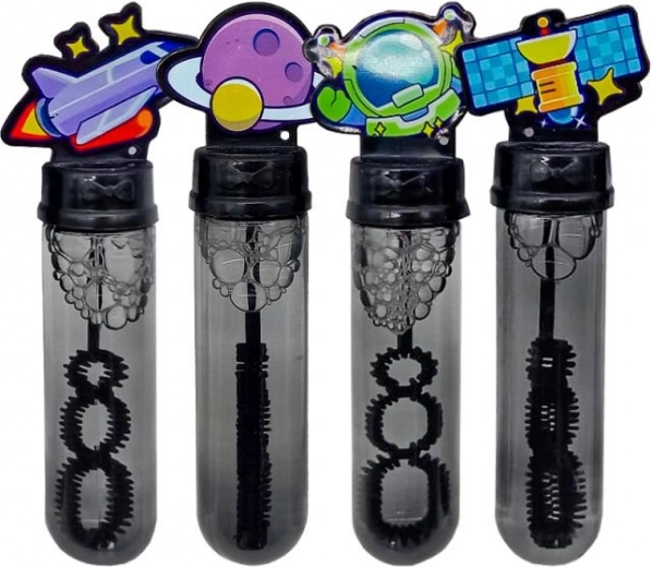 Vrchnák zdobí raketa, planéta, kozmonaut alebo družica. Každý motív dodáva bublifuku originálny vzhľad a robí z neho skvelý malý darček.