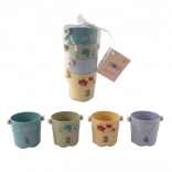 Roztomilá sada vedierok do vody poteší každé bábätko aj batoľa. Hodí sa do vane, na pláž aj na pieskovisko. Podporuje hry s vodou, rozvoj jemnej motoriky a učenie farieb a čísel. Veselé farby, ľahká manipulácia a univerzálne použitie robia z tejto sady obľúbenú hračku na každodenné kúpanie.