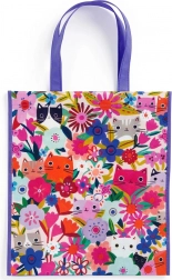 Táto štýlová a praktická nákupná taška je ideálna na každodenné použitie. Kresby mačiek medzi kvetmi dodajú vašim nákupom osobitý štýl.