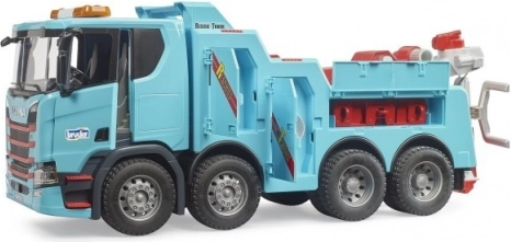 Robustné vyprosťovacie a odťahové vozidlo BRUDER na podvozku SCANIA SUPER 560R verne napodobňuje skutočné zásahové vozidlá. Vďaka detailne spracovanej kabíne s otvárateľnými dverami a kapotou, funkčnému navijaku a výsuvnému ramenu s hákom si deti užijú autentickú záchrannú akciu na ceste.