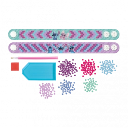 Vytvorte si svoje vlastné žiarivé náramky s motívom Stitch pomocou diamantového maľovania. Táto kreatívna sada obsahuje všetko potrebné na ozdobenie dvoch originálnych náramkov trblietavými kamienkami.
