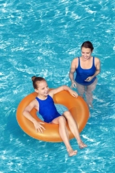 Neónovo oranžový plávací kruh BESTWAY s priemerom 91 cm je perfektnou voľbou pre letné radovánky. Vďaka pevnej PVC konštrukcii a odolnosti voči UV žiareniu a slanej vode si užijete spoľahlivú oporu a pohodlie pri plávaní aj odpočinku na hladine.