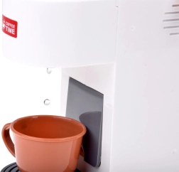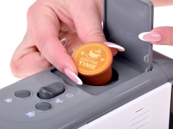 Kávovar umožňuje nalievať vodu do šálok a simuluje prípravu kávy vrátane voľby typu nápoja – perfektný zážitok ako v pravej kaviarni.