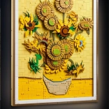 Obdivujte génia van Gogha a jeho nádherné farby vďaka trom odtieňom žltej a slávnemu využitiu svetla a tieňa. Tento set o 2615 dielcoch obsahuje 16 slnečníc s nastaviteľnými okvetnými lístkami, zložiteľný rám, doštičku s podpisom van Gogha a záves pre jednoduchú prezentáciu.