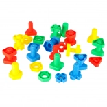 Jednotlivé skrutky a matice majú rôzne tvary, ktoré je potrebné správne spárovať. Vďaka jednoduchému princípu je stavebnica vhodná pre predškolákov a skvele podporuje priestorovú predstavivosť a trpezlivosť.