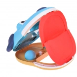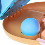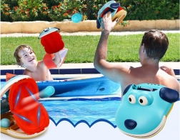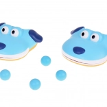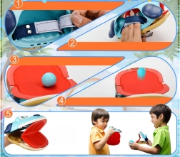 Tento hravý a farebný set obsahuje dve ľahko uchopiteľné chňapky, ktoré pripomínajú vzhľadom psíkov. Vďaka nastaviteľnej veľkosti pomocou suchého zipsu sa ľahko prispôsobia každej ruke. V každej chňapke sú dve lopty, ktoré deťom umožňujú hrať sa samostatne alebo v páre. Herný mechanizmus je jednoduchý – stačí vložiť loptu do "tlamy" psíka, zamieriť na protihráča a otvoriť tlamičku. Lopta automaticky vystrelí smerom k cieľu.