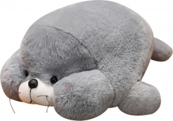 Plyšová tuleň je vyrobená z vysoko kvalitného materiálu v jemnej sivej farbe, pripomínajúca realistického tuleňa s priateľským, mierne splošteným tvarom. Jej zaoblené telo, výrazné labky a sladký výraz s ňufákom a fúzmi okamžite vzbudzujú dôveru a potrebu ju objať.