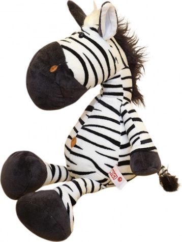 Táto plyšová hračka v tvare zebry so svojimi čiernobielymi pruhmi a jemnou čiernou srsťou na hrive a chvoste prináša radosť a pohodu každému dieťaťu. Jej dlhšie končatiny a zaoblená hlava dodávajú zebre priateľský rozprávkový vzhľad.