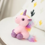 Tento pôvabný plyšový jednorožec slúži ako originálny doplnok k batohu, kabelke, kľúčom alebo peračníku. Vyrobený z príjemného ružového plyšu s trblietavými fialovými prvkami, má mäkkú hrivu a chvost v dúhových farbách a žiarivý roh. Tento mini jednorožec očarí ako deti, tak dospelých.