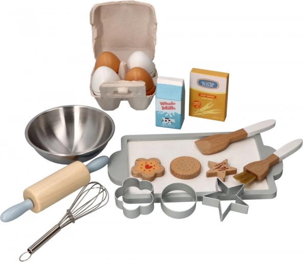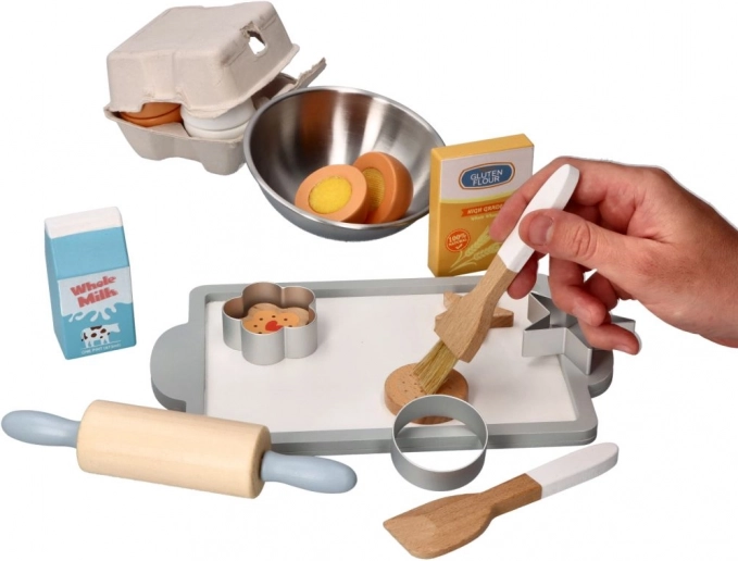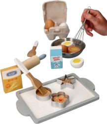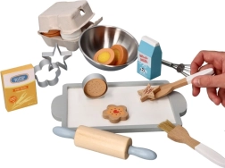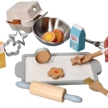 Váleček, metla, štetce, vykrajovačky a misa umožnia deťom napodobniť skutočné pečenie a precvičiť manipuláciu s nástrojmi.