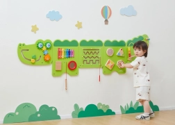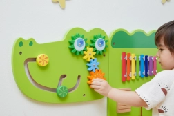 Táto veľká nástenná aktívna tabuľa v podobe veselého krokodíla je rozdelená na niekoľko panelov, ktoré deti lákajú k objavovaniu. Farebné prvky podnecujú zvedavosť, rozvíjajú zmysly a podporujú samostatnú hru. Pevná drevená konštrukcia s hladkými hranami je bezpečná a odolná na každodenné používanie.