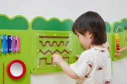 Každý panel ponúka iný typ aktivity – od hrania na xylofón cez otáčanie ozubených kolies a diskov so vzormi až po vedenie korálikov a posúvanie dielikov v bludiskách. Deti si pritom prirodzene precvičujú koordináciu, úchop, trpezlivosť aj riešenie problémov. Montáž na stenu šetrí miesto a umožňuje súčasnú hru viacerým deťom.