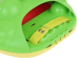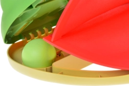 - Na strane katapultu sa nachádza biely zips – posuňte ho na otvorenie úst žaby a vkladanie loptičky.