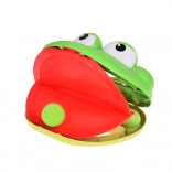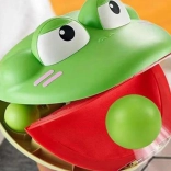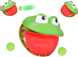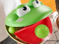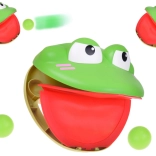 - Vložte jednu loptičku do úst žaby, ako keď je na jazyku.