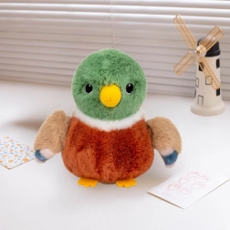 Plyšová káčatko je krásna hračka v mnohých farebných tónoch, ktorá zaručene pritiahne pozornosť. Vyrobená z mäkkého a príjemného plyšu, spája odtiene zelenej, hnedej, žltej a modrej, čo vytvára vernú repliku divokej kačky. Jej okrúhla hlavička, rozložené krídelká a typický žltý zobáčik jej dodávajú unikátne kúzlo, ktoré získava srdcia detí aj dospelých.
