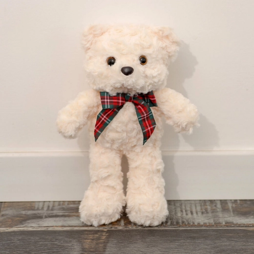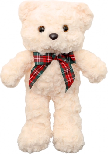 Ozdobná mašľa v klasickom škótskom koberci predstavuje elegantný akcent, ktorý medvedíkovi dodáva sviatočný a darčekový charakter. Medvedík má stabilnú, stojacu polohu a výborne sa hodí ako spoločník na hranie, mazlík na spanie alebo dekoratívny prvok v detskej izbe.