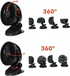 Ventilátor umožňuje úplnú voľnosť smeru s možnosťou rotácie o 360° v horizontálnej aj vertikálnej osi.