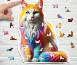 WOODEN CITY drevené puzzle Dúhová mačka je skvelou zábavou pre každého milovníka puzzle. Špeciálne tvarované dieliky a ekologické balenie zaručuje výnimočný zážitok pri skladaní.