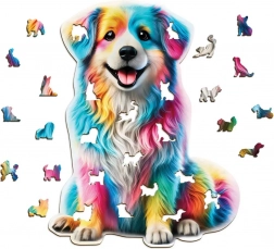 WOODEN CITY drevené puzzle s 250 dielikmi v tvare dúhového psa ponúka jedinečný zážitok zo skladania. Vďaka laserom vyrezávaným dielikom v tvare zvierat a ekologickému baleniu vás zaujme svojou originalitou.