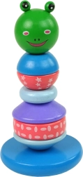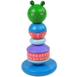 Táto farebná detská pyramída obsahuje 6 zaoblených krúžkov v rôznych veľkostiach a vzoroch s rozkošnou hlavičkou žabky na vrchole. Základňa v tvare polgule spôsobuje, že pri každom dotyku balancuje, čo sťažuje umiestnenie krúžkov na kolík, a tým rozvíja detskú predstavivosť a koordináciu oko-ruka.