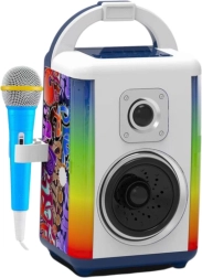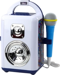 Hudobná sada je vybavená mikrofónom, ľahko prenosným dizajnom a vstupmi pre slúchadlá a MP3. Na paneli môžete meniť režimy, efekty a hlasitosť. Režim Bluetooth umožňuje prehrávanie obľúbených skladieb z telefónu alebo MP3 prehrávača. Vďaka kompaktným rozmerom a intenzívnym zvukovým a vizuálnym efektom je sada perfektná pre domáce použitie aj detské oslavy.