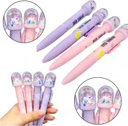 Roztomilé guľôčkové pero je vybavené figúrkou umiestnenou v priehľadnej kupole s plávajúcimi hviezdičkami, trblietkami a ďalšími dekoratívnymi detailmi. Vytvára tak unikátny dizajn, ktorý upúta každého malého kreatívca.