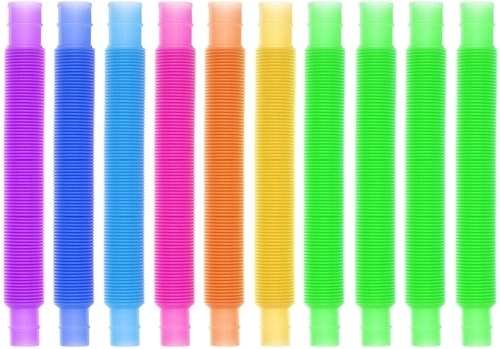 Táto sada 10 senzyrických rúrok je navrhnutá na poskytnutie hmatovej a sluchovej stimulácie. Rúry, dostupné v 7 rôznych farbách - žltá, ružová, fialová, oranžová, modrá, námornícka modrá a zelená, sú ideálne pre vzdelávacie hry ako učenie písmen, počítanie a iné. Ich schopnosť prepojenia umožňuje tvoriť rôzne tvary ako kruhy a štvorce, čo podporuje detskú kreativitu a zabezpečuje hodiny zábavy. Pre dospelých slúži ako skvelý nástroj na uvoľnenie stresu.