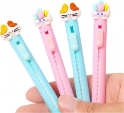 Vysúvacia guma s mačacou figúrkou ponúka pastelové farby a zábavný dizajn, ktorý zaujme nielen deti. Je mäkká a šetrná k papieru, a pritom efektne odstraňuje grafit. Perfektná do školy, na doma alebo na výtvarné aktivity.