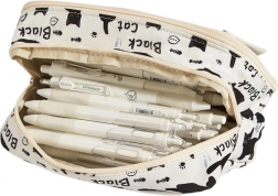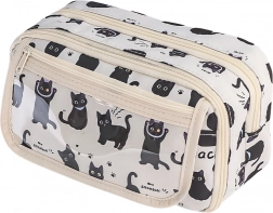 Peračník s zábavným motívom čiernych mačiek má hlavnú priestrannú komoru a ďalšie vnútorné priehradky, ktoré umožňujú usporiadanie všetkých potrebných školských pomôcok.
