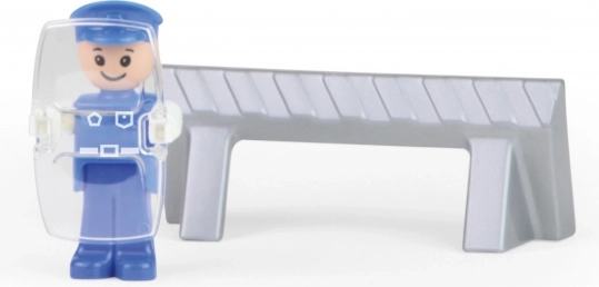 Súčasťou setu je aktívny panáčik so štítom a zábrana na vytváranie autentických policajných scenárov.