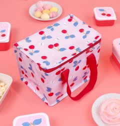 Chladiaca taška so vzorom čerešní je ideálna na uchovanie jedla a nápojov v chlade. Ponúka dostatok priestoru pre desiatové krabičky, fľaše s vodou a čerstvé ovocie a zeleninu.
