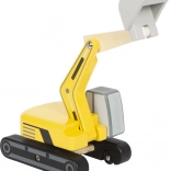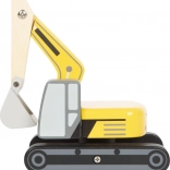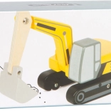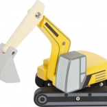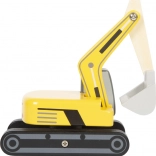 Tento drevený bager je ideálny pre malé rúčky vďaka zaobleným hranám a širokým otvorom okien. Deti si tak môžu ľahko hrať a rozvíjať svoju jemnú motoriku. Pogumované kolesá zabezpečujú tichý a plynulý pohyb vozidla po akomkoľvek povrchu.