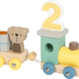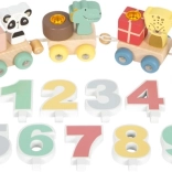 Lokomotíva pojme číslice od 1 do 9 v jemných pastelových farbách. Deti si precvičia číselný rad a farby zábavne a prirodzene.