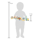 Deti môžu umiestňovať 6 zvieratiek na 6 vagónikov, trénovať farby, čísla a rozvíjať predstavivosť – zvieratká možno vyňať a využiť v ďalších hrách mimo vláčik. Hračka je ideálna pre deti od 2 rokov a podporuje jemnú motoriku, koordinačné zručnosti a kreatívne rozprávanie príbehov.
