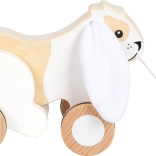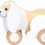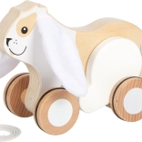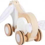 Roztomilý zajac vyrobený z kvalitného pevného dreva očarí každé dieťa svojimi mäkkými, šušťavými uškami a chvostíkom. Podporuje motorické zručnosti a povzbudzuje deti k lezeniu a chôdzi s povrázkom, ktorý je možné ľahko ťahať. Pogumované kolieska zabezpečujú plynulú a tichú jazdu.