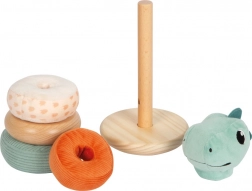 Táto motorická hračka v podobe kývajucej sa veže so štyrmi farebnými krúžkami je ideálna pre rozpoznávanie veľkostí a farieb. Veža obsahuje bezpečnú pohyblivú stredovú tyč a usmievavú hlavu dinosaura. Zaoblená základňa zaisťuje stabilitu, zatiaľ čo rôznorodé látkové a drevené krúžky upútajú svojim dizajnom.